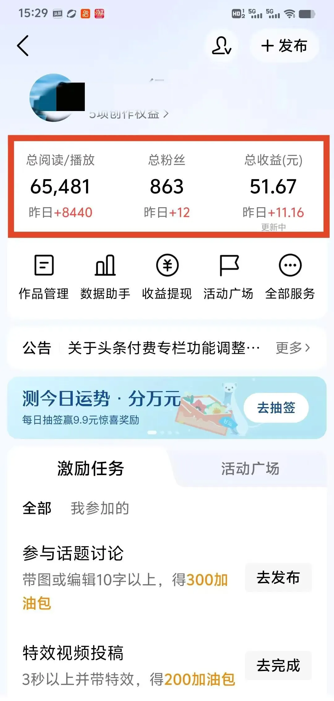 头条项目一直是一个能够长期耕耘的项目,有些人刷头条看到别人大百的收益,又是羡慕嫉妒,自己什么时候也能像他们这样,靠一篇文章爆起来。